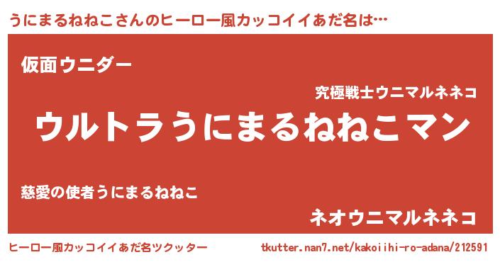 | 伝説のあだ名 | 『最強の忍者うにまるねねこ』 |