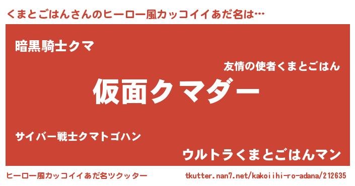 くまとごはんさんのヒーロー風カッコイイあだ名をツクッター!