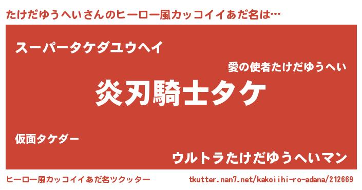 | 意味不明あだ名 | 『とにかく怪しいたけだゆうへい』 |