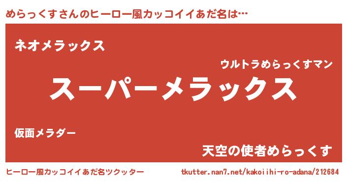 | 胡散臭い通販商品みたいなあだ名 | 『必ず成功するブレスレット…その名も「めらっくす」』 |
