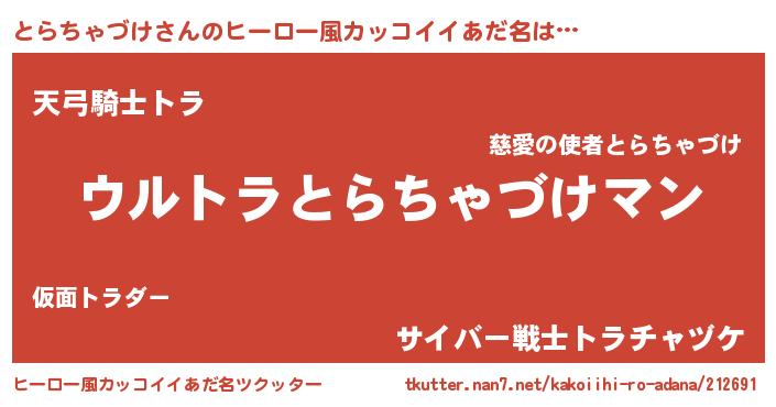 | 欧米人風あだ名 | 『とらちゃづけクリステル』 |