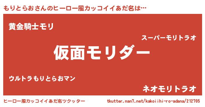 | 意味不明あだ名 | 『住所不定無職もりとらお(79歳)』 |