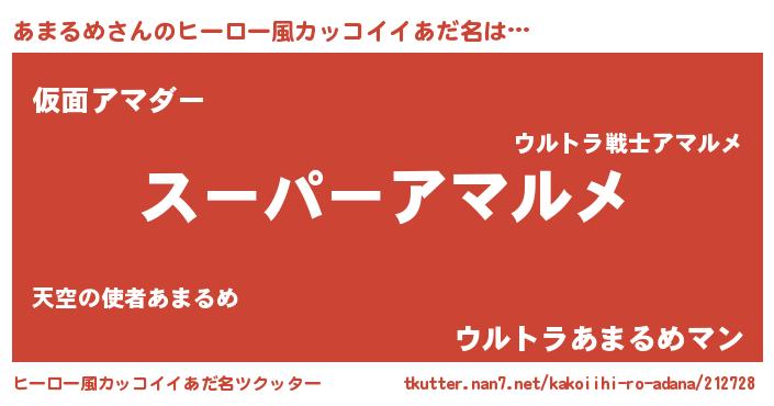 | 男性向けラノベタイトル風あだ名 | 『あまるめの憂鬱』『魔弾の王とあまるめ』 |