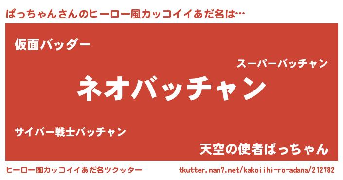 | ヘコむあだ名 | 『ばっちゃん(小並感)』『ばっにゅー』 |