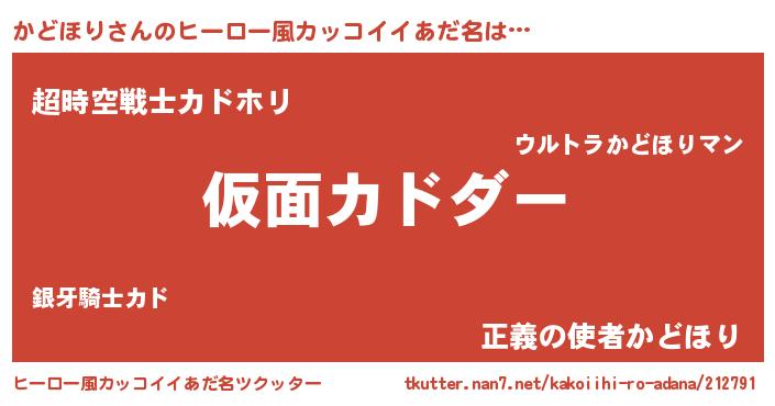| 男性向けラノベタイトル風あだ名 | 『かどほりに滅ぼされるだけの簡単なお仕事です』 |