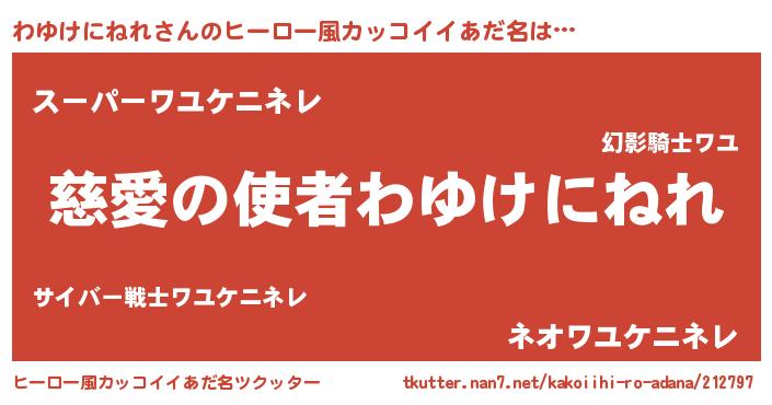 | ヘコむあだ名 | 『わゆもー』『わゆけにねれ(笑)』 |