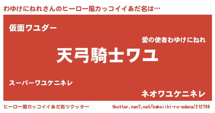 | ポケモン風あだ名 | 『ヒワユケニネレ』『ワーユイ』 |