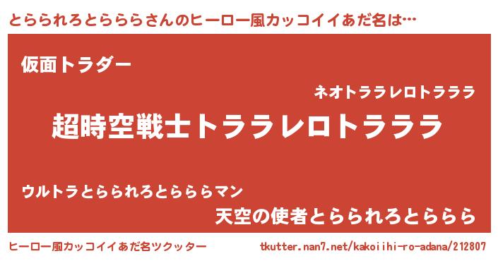 | 女子向けラノベタイトル風あだ名 | 『とらられろとらららなんてお断りですっ。』 |