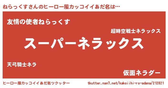 ねらっくすさんのヒーロー風カッコイイあだ名をツクッター!