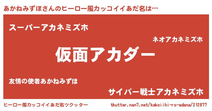 | 意味不明あだ名 | 『住所不定無職あかねみずほ(12歳)』 |