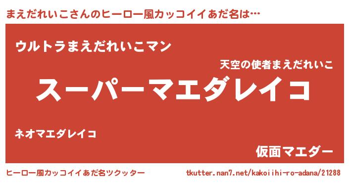| 料理風あだ名 | 『まえだれいこごはん』 |