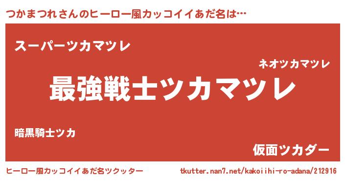 | 男性向けラノベタイトル風あだ名 | 『Re:つかまつれから始める異世界生活』 |