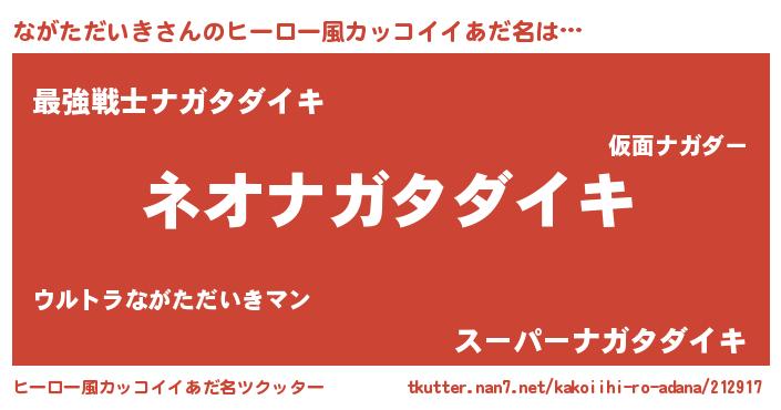 | 男性向けラノベタイトル風あだ名 | 『ながただいきという概念が存在しない退屈な世界 』 |