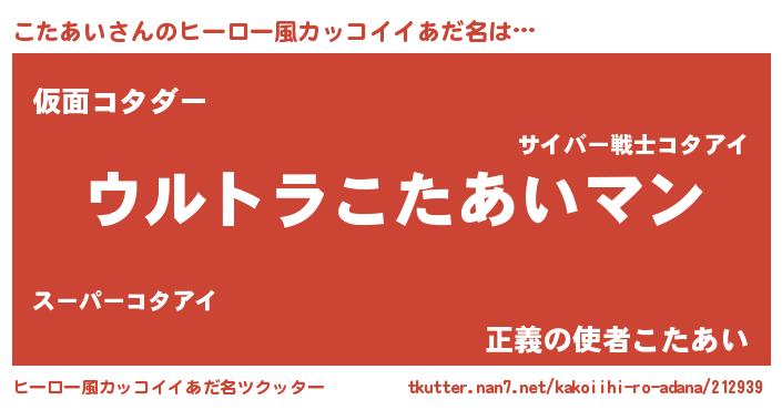 | 意味不明あだ名 | 『こたあいフォーエバー』『自称こたあい』 |