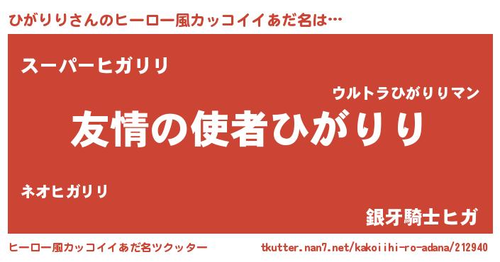 | 女子向けラノベタイトル風あだ名 | 『ひがりり恋絵巻』 |