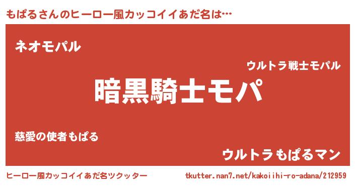 | 意味不明あだ名 | 『とにかく怪しいもぱる』『自称もぱる』 |