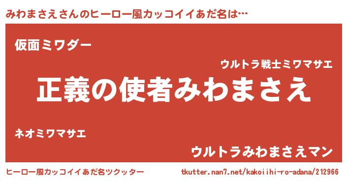 | 男性向けラノベタイトル風あだ名 | 『おまえをオタクにしてやるから、俺をみわまさえにしてくれ! 』 |