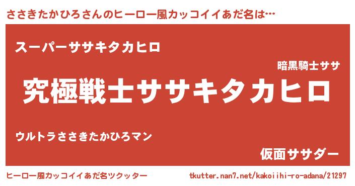 | 男性向けラノベタイトル風あだ名 | 『Re:ささきたかひろから始める異世界生活』 |
