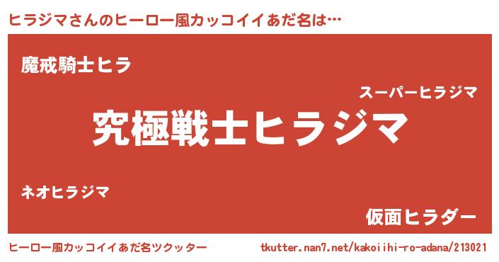 | 男性向けラノベタイトル風あだ名 | 『Re:ヒラジマから始める異世界生活』 |