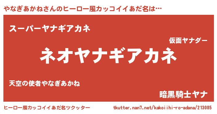| 胡散臭い通販商品みたいなあだ名 | 『絶対に幸福をもたらす水素水…その名も「やなぎあかね」』 |