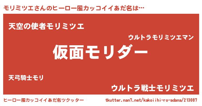 | 男性向けラノベタイトル風あだ名 | 『魔弾の王とモリミツエ』 |