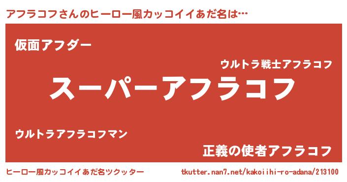 | 男性向けラノベタイトル風あだ名 | 『緋弾のアフラコフ』『アフラコフの憂鬱』 |