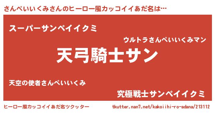 | 男性向けラノベタイトル風あだ名 | 『さんぺいいくみの嫁は女の子じゃないと思った?』 |