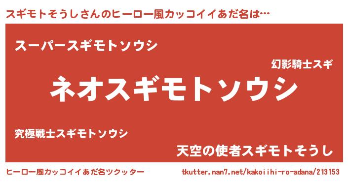 | ヘコむあだ名 | 『スギモトそうし(震え声)』『スギっふぃ~』 |