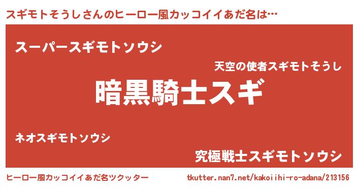 | 意味不明あだ名 | 『とにかく怪しいスギモトそうし』 |