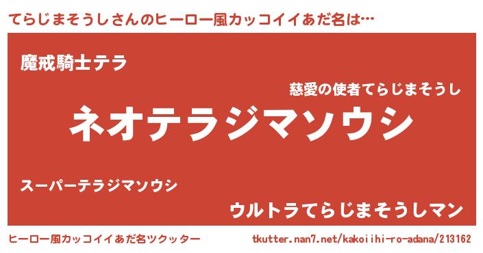| 男性向けラノベタイトル風あだ名 | 『誰もが恐れるあのてらじまそうしが、ぼくの専属メイドになるようです。』 |