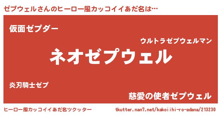 | 意味不明あだ名 | 『永久保存ゼプウェル』 |