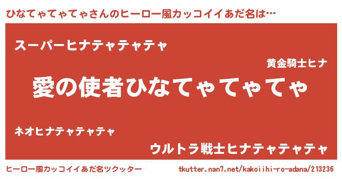 | 女子向けラノベタイトル風あだ名 | 『ひなてゃてゃてゃ恋絵巻』 |
