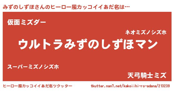 | 意味不明あだ名 | 『みずのしずほフォーエバー』 |