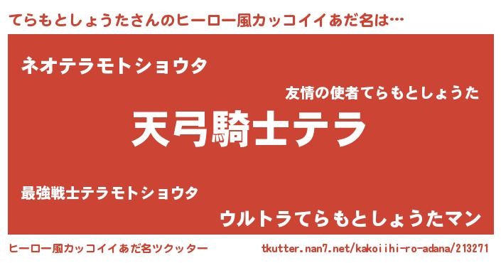 | 男性向けラノベタイトル風あだ名 | 『てらもとしょうたの嫁は女の子じゃないと思った?』 |