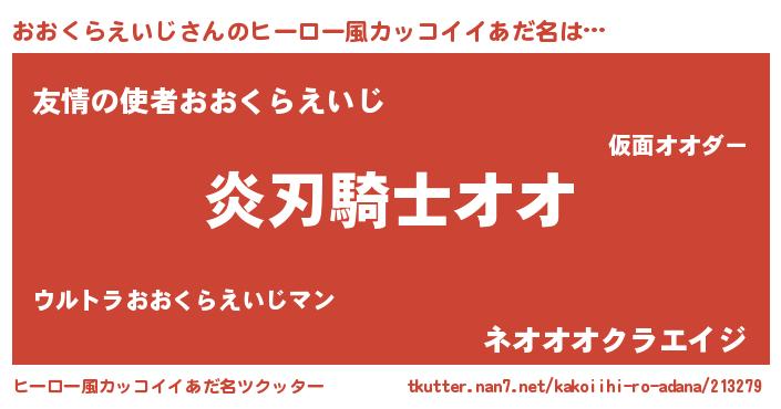 | 女子向けラノベタイトル風あだ名 | 『おおくらえいじ様がみてる』 |