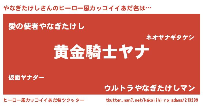 | 男性向けラノベタイトル風あだ名 | 『ダンジョンにやなぎたけしを求めるのは間違っているだろうか』 |