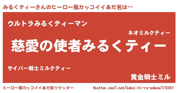 | 胡散臭い通販商品みたいなあだ名 | 『モンドセレクションを受賞した隕石のかけら…その名も「みるくティー」』 |