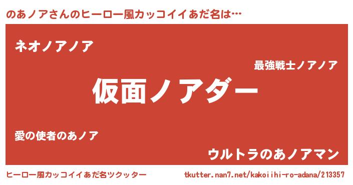 | 意味不明あだ名 | 『住所不定無職のあノア(59歳)』 |