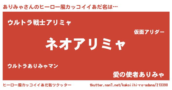 | 胡散臭い通販商品みたいなあだ名 | 『絶対に幸福をもたらす水素水…その名も「ありみゃ」』 |
