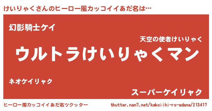 | 意味不明あだ名 | 『けいりゃくフォーエバー』 |