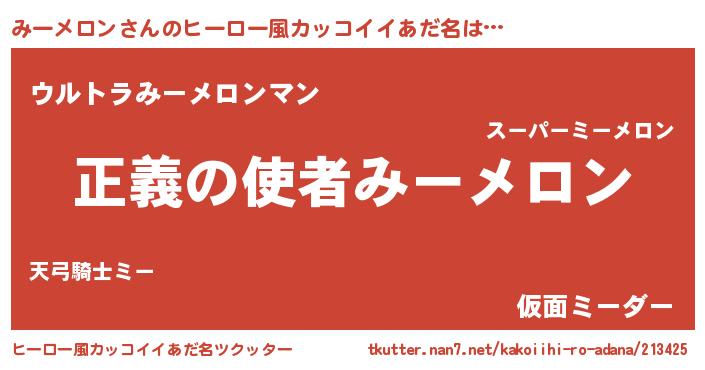 | 男性向けラノベタイトル風あだ名 | 『ミーメロンスレイヤー』 |