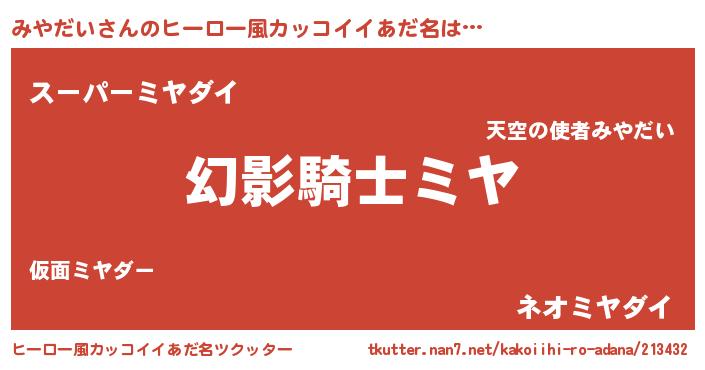 | 胡散臭い通販商品みたいなあだ名 | 『全米が絶賛したサプリメント…その名も「みやだい」』 |