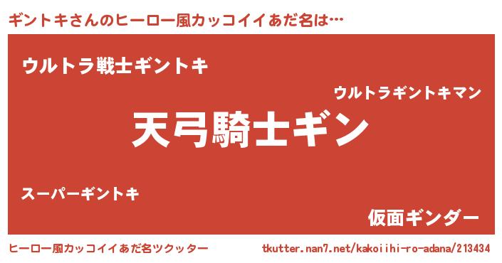 | 男性向けラノベタイトル風あだ名 | 『ギントキの嫁は女の子じゃないと思った?』 |
