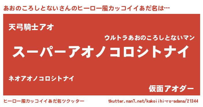 | 胡散臭い通販商品みたいなあだ名 | 『億万長者になれる霊験あらたかなお札…その名も「あおのころしとない」』 |
