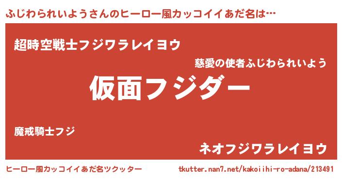 | 意味不明あだ名 | 『住所不定無職ふじわられいよう(93歳)』 |