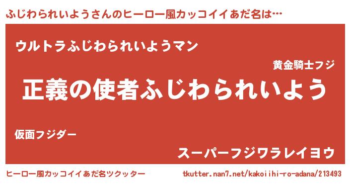 | 男性向けラノベタイトル風あだ名 | 『おまえをオタクにしてやるから、俺をふじわられいようにしてくれ! 』 |