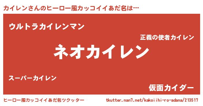 | 女子向けラノベタイトル風あだ名 | 『異世界で失敗しない100のカイレン』 |