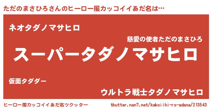 | ヘコむあだ名 | 『ただにゅー』『ただのまさひろ(笑)』 |