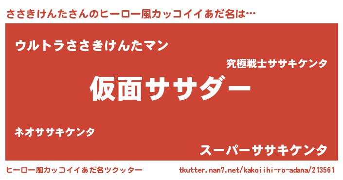 | 男性向けラノベタイトル風あだ名 | 『この素晴らしい世界にささきけんたを!』 |