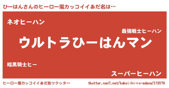 | 女子向けラノベタイトル風あだ名 | 『ひーはんの雑貨屋さん』『闇のひーはん』 |